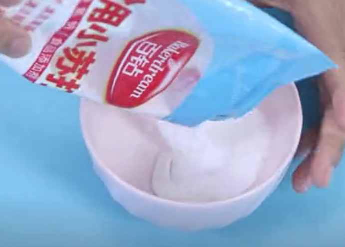 然后在里面加入小苏打,小苏打一定要多加一些。