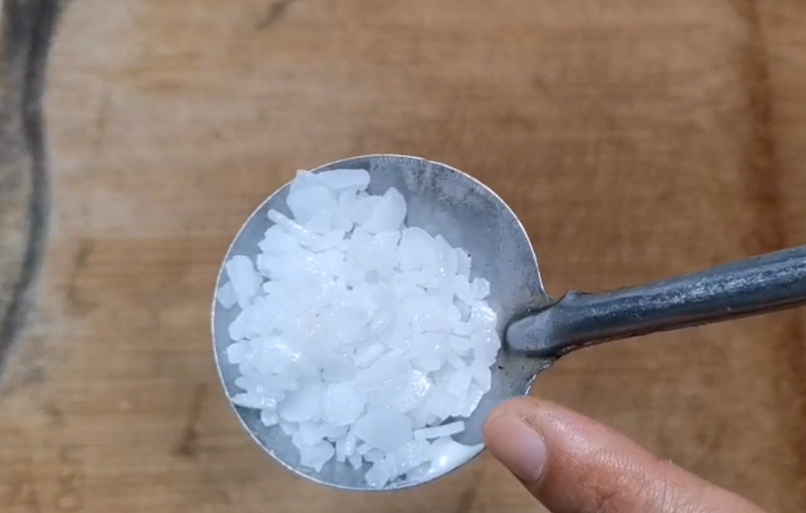 如果大家家中没有这种工业碱,可以用小苏打代替,但是小苏打的效果要差一些。去除黄曲霉素的毒性也要比这个片碱要差一些。