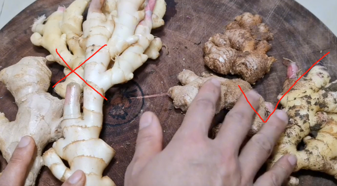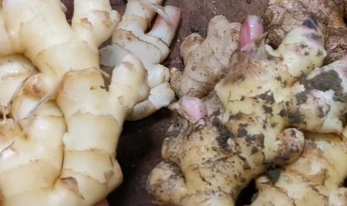 我们大家在买姜时最好是就买泥巴姜,什么是泥巴姜?就是没有清洗过的,它的泥沙还在上面的这种姜,这种姜安全一些,现在都洗干净后的姜,我们尽量不要买。这种姜颜色比较鲜艳,多半是加工的,我们如何挑选正常的姜?