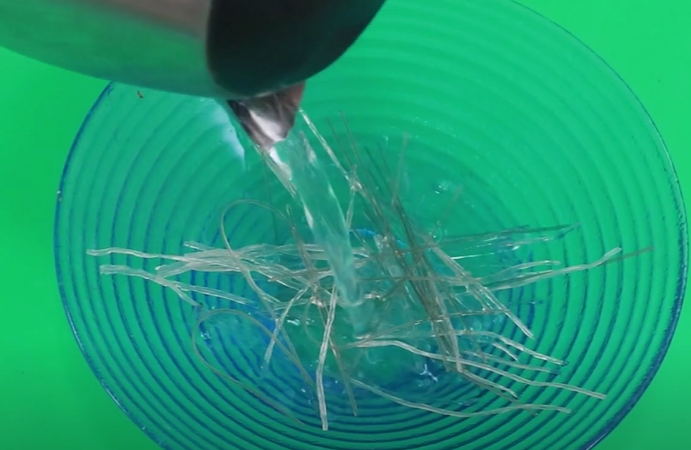 第四,我们可以通过泡一泡就能分辨真假红薯粉,我们将红薯粉折断放进一个容器里面,然后倒入温水给他浸泡三分钟。如果薯粉完全都泡开了,证明这样的红薯粉里面添加了太多的化学物质。吃过红薯粉的朋友都知道,我们红薯粉泡发至少要十到20分钟,不可能三分钟就泡发好的,这样的红薯粉不建议大家购买,所以说泡一泡就知道它是真假。