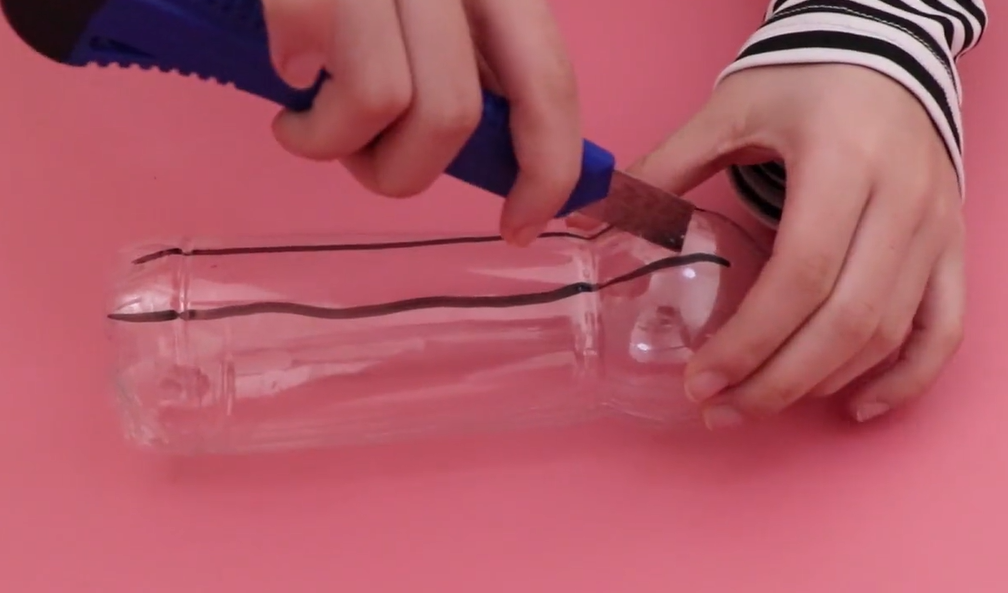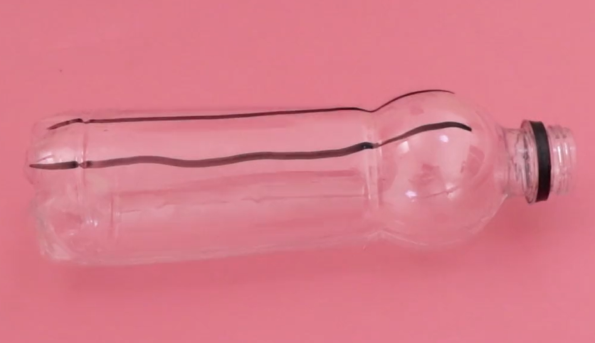 第一,塑料瓶速干法。我们准备了一个塑料瓶,然后用记号笔在上面画两条平行线,像这样就可以了。
