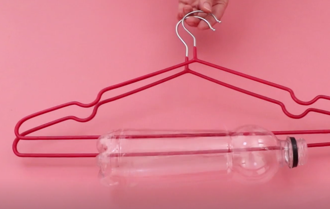 接下来我们将衣服挂上去来试一下效果。塑料瓶,撑开了衣服的空间,有助于空气流通,加快了衣服变干的时间,这样晾晒也更不容易变形。