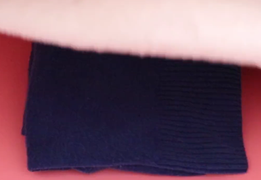 第三,干毛巾速干法。我们刚洗完的衣服,无论怎么拧干,上面都会有很多水分,我们在上面放一张纸巾,很快就湿透了。这个时候我们将湿毛巾折叠一下,然后我们拿出一块干燥的毛巾,将它包裹起来,像这样子拧一下,让毛衣上的水分都吸附到毛巾上面。