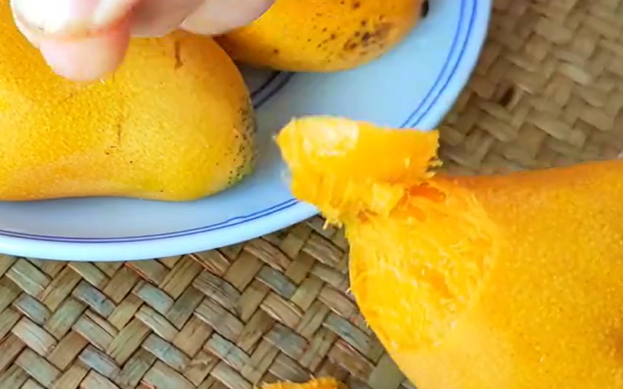 现在正是芒果大量上市的季节,又新鲜又香甜,但是芒果好吃却不好剥皮,总是弄得满手都是。今天我们分享几种芒果快速剥皮的好方法,不脏手,不流汁。我们先来看一下,如果就这样直接剥的话,芒果非常不好拨,皮会一点一点地断掉,扣的指甲里全是果肉,而且指甲还会疼。