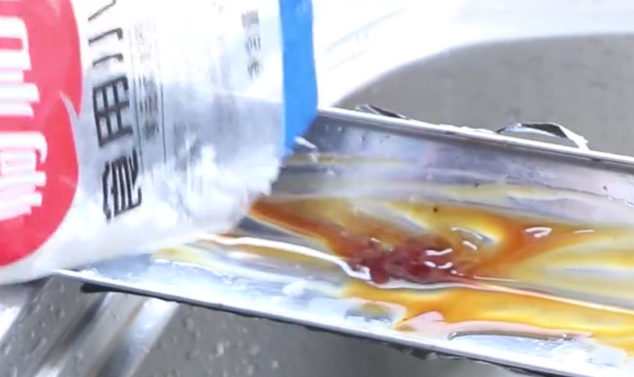 接下来,我们准备百洁布擦拭一下,可以快速的将上面的油垢擦拭干净,再我们使用流动清水将它全部冲洗干净,