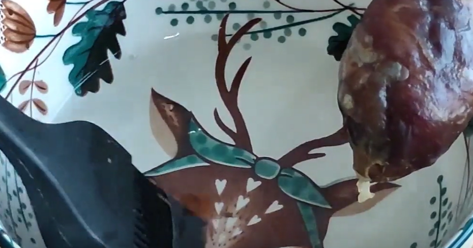 下面分享第二种方法,小碗里倒入适量食用油,用干净的刷子把香肠表面刷上一层食用油,这样就形成了一层保护膜,能锁住香肠里面的水分,隔绝外面的细菌。