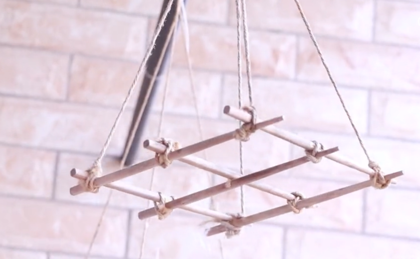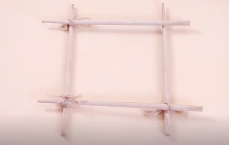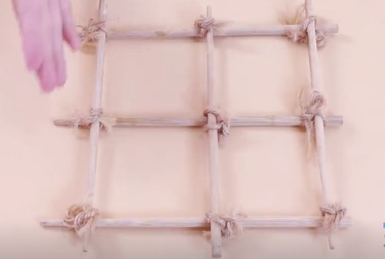 废旧筷子的第一个用途,首先取四根筷子摆成井字形,摆成井字形过后,接下来用小绳子将每一个连接的部位固定起来,绑牢固就可以用来做一个蒸格,