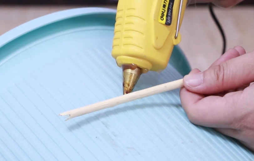 废旧筷子的第三个用途,我们取一根筷子或者一次性筷子,将它对半折开,用来防止垃圾桶垃圾袋下滑,也是非常棒的。对半折开之后,接下来我们直接用热熔胶将它固定在垃圾桶两侧,对称粘好就可以。