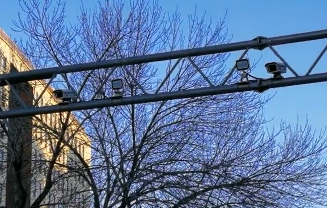 第四种,就是一个区间测速的一个摄像头,因为我们都知道交通上面的这个速度也是很重要的,有一种摄像头就是专门用来测试你是否超速的摄像头了,这种摄像头也是挂在了这个道路的一般是中间的这个位置,正好可以测到旁边的这些汽车有没有超速。