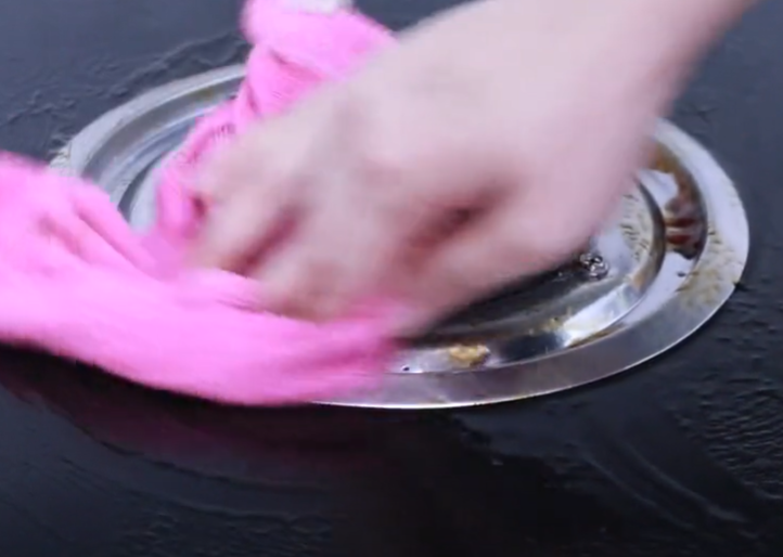 两分钟后大家可以看到上面的油污都已经溶解了。接下来,我们准备个抹布将它擦拭干净,效果非常的不错。这是因为牙膏的清洁能力非常的强,啤酒里面含有酒精,消毒又杀菌,可以软化这些油污,非常的不错。