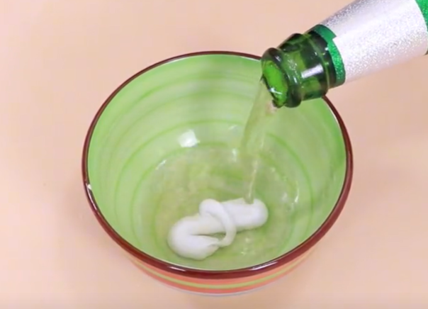 接下来倒入家里过期的啤酒。倒入半碗就可以了,人后准备筷子给它搅拌均匀,就可以拿去利用起来了。啤酒牙膏水的溶液搅拌好之后,我们直接倒进喷壶里面。