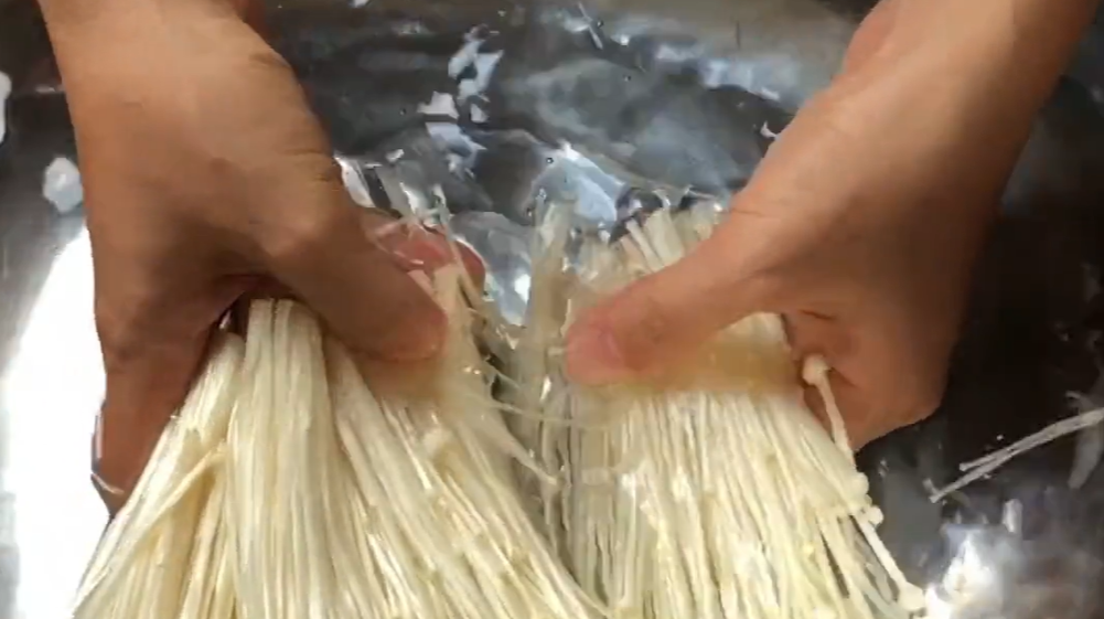所以大家最好就随买随吃,如果摸起来都感觉很粘手啦,大家千万不要去买啦。买回来的金针菇最好先用清水浸泡一下,再焯水两分钟左右就可以安全食用了。