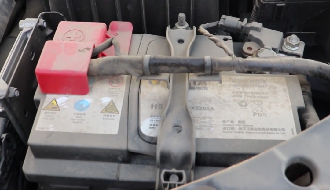 首先第一点我们要检查的,便是这个引擎盖里边的这个电瓶,像电瓶,像我们这个一般的这个电瓶,它左边和右边两边都有这个两个小孔,这两个小孔是干什么?是用来进行一个散热的排气的一个作用。