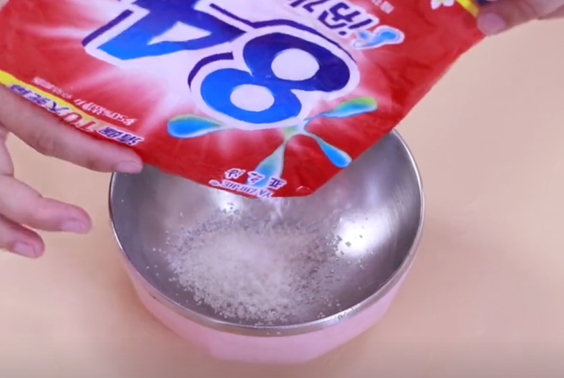 接下来我们在里面加入洗衣粉,洗衣粉可以多倒一些。
