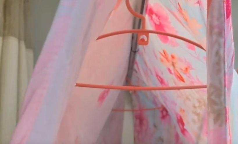 第二点就是让里面要有空气流动,我们可以取一到两个衣架在里面撑起来,这样内部就有足够的空间,而且不会两片重合在一起,撑开之后可以让它干得更快。尤其是夏天,如果长时间不通风的话,里面很容易出现一种发霉的味道,用这个方法就可以提高它晾干的速度啦。