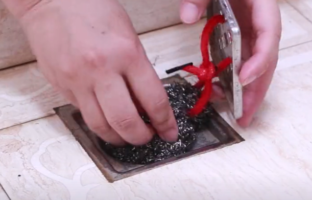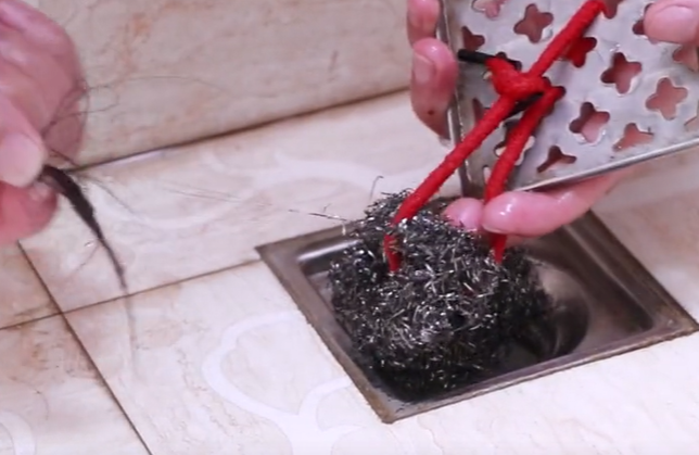 首先准备根绳子,穿过废旧钢丝球,然后将手提绳再穿过地漏盖将它固定起来,打个结,就可以防止管道堵塞。接下来直接将钢丝球塞进下水管道,这样就可以防止管道堵塞。很多朋友会问,下水管道塞个钢丝球会不会影响到排水。其实不会,我们只需要定期的清理一下钢丝球,将它拉出来也非常的方便,