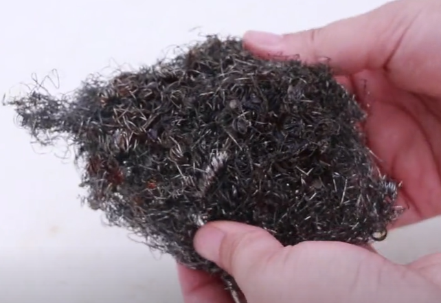 大家可以看到钢丝球在里面帮我们过滤了很多的头发,断发,只要头发不掉进管道,自然不会造成堵塞,是非常的实用。而且钢丝球还可以循环利用,这样家里的管道再也不会堵塞。