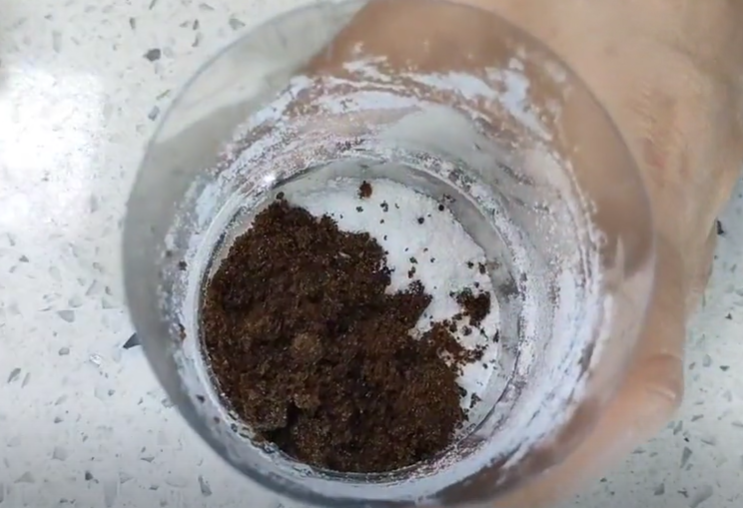 然后加入适量的清水,用筷子搅拌一下,让洗衣粉和红糖还有水充分的融合,搅拌至洗衣粉和红糖充分的融化。