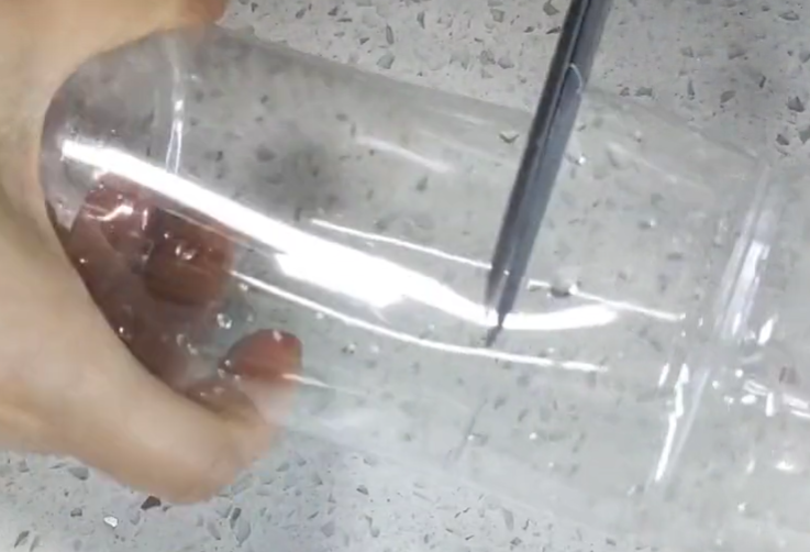 首先,我们准备矿泉水瓶,用剪刀将它一分为二。
