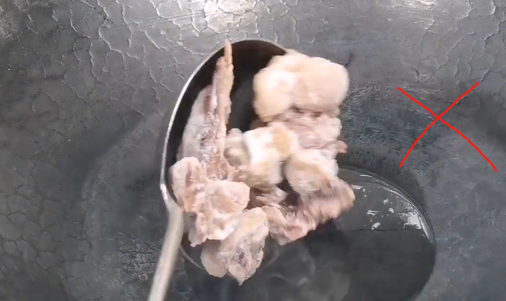 没解冻的冷冻食品直接放进油锅里,食物外层的冰会迅速变成水蒸汽,让油锅立刻沸腾起来,不仅隔离的食物会炸飞伤到人,沸腾的油溢出来,落到燃气灶的火苗上还会起火。请大家记住,如果是冷冻的食物,一定要在解冻以后才能放进油锅中烹饪。