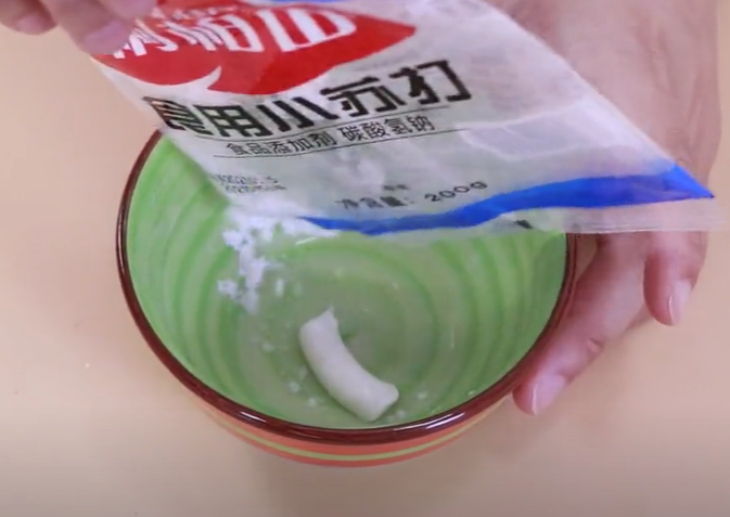 然后在里面加入小苏打,小苏打可以多加一些,