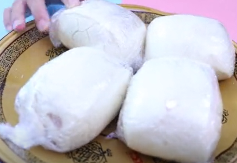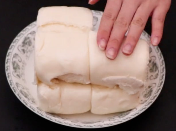 保存我们的馒头,要用到保鲜膜,因为如果不用保鲜膜的话,馒头的水分流失就会变得非常干硬难吃了,我们将馒头保鲜膜一个一个的全都给他包裹起来。