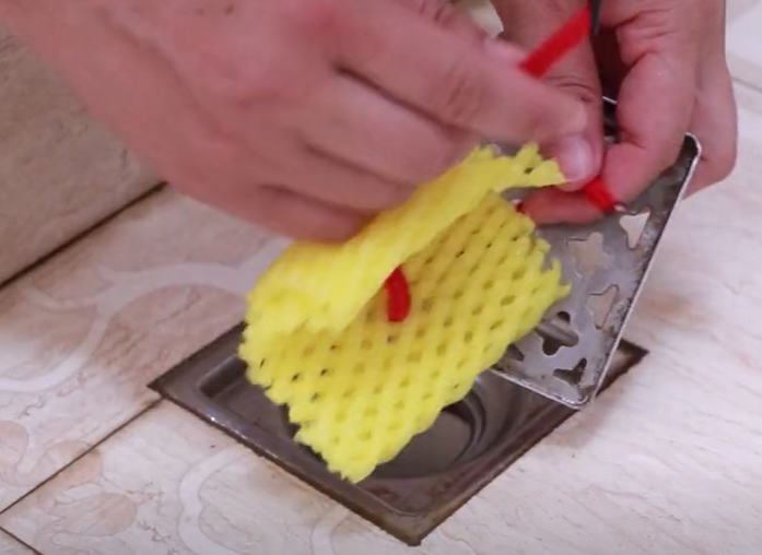水果网套第五个用途可以防止管道堵塞。首先准备手提绳穿过水果网套,然后就可以拿去卫生间利用起来,效果非常棒。直接将地漏盖拿起来,然后将手提绳穿过地漏盖,接下来给它打个结,固定起来,就可以防止管道堵塞。