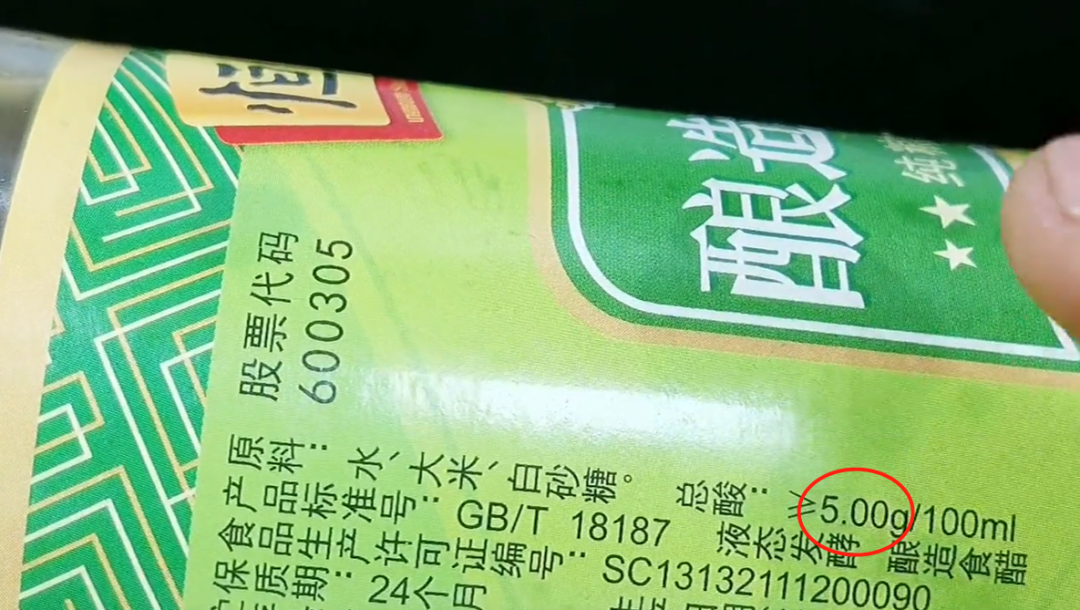 首先我们准备一瓶酿造的米醋,好一点的米醋也是分度数的,一般分为9度、5度、3.5度,一般情况下我们选择五度就可以了,不能太高。9度的米醋它就是一种功能性米醋的醋,酸味儿很浓,香味变淡。