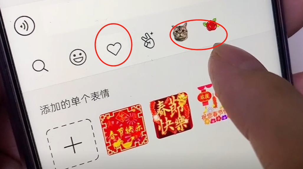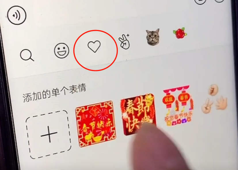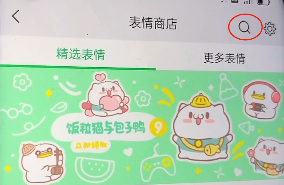 我想发2022年祝你春节快乐,这个表情去哪里找?我接着带大家一块去探索,还是来到了这个表情,点进来以后,在这有一个放大镜,这个就是搜索的标志,