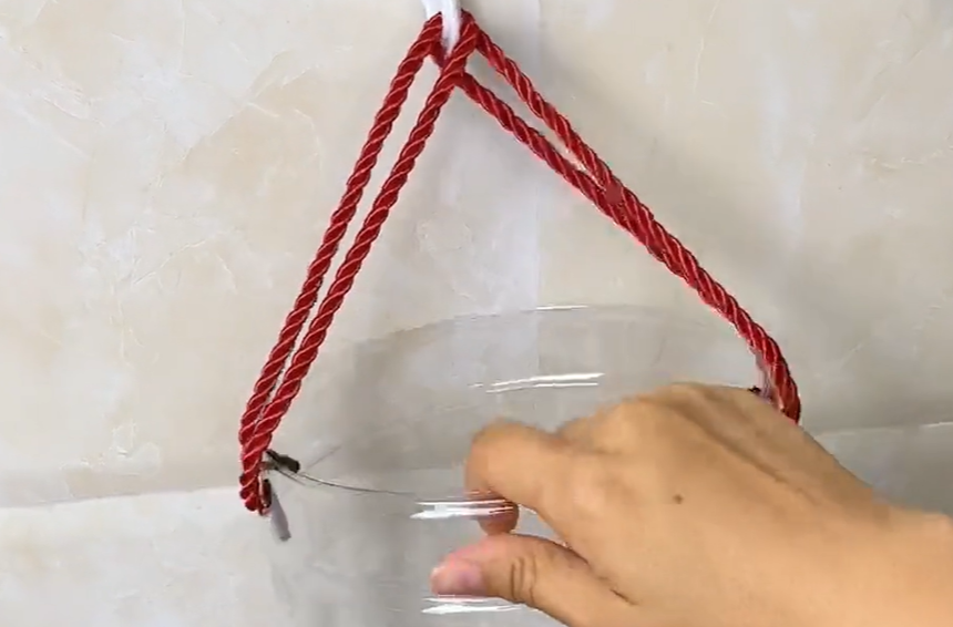 接下来我们取下包装袋上面的两根绳子,将它装在油桶的底座上面,这样一个简单的收纳盒就做好啦。这样的收纳盒我们可以将其挂在厨房里边,像平时我们经常会用到的调味剂都可以放在里边,就比如大蒜,生姜块,都可以一边放在里边,这样挂在墙上又不占地方,拿取也方便,并且可以很好的保存大蒜和生姜,因为地面本就潮湿,而大蒜和生姜浴茶油特别容易发芽。我们将它挂起来,保存时间基本上可以延长一半不止。