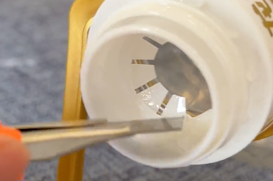 清洗之前,我们先将瓶口内的这些小锯齿用美工刀切掉,这样方便后期清洗时到处脏东西,所以这一步不要省略,不然后期清洗会很麻烦,倒水都会不流畅,接下来我们开始洗油桶啦。