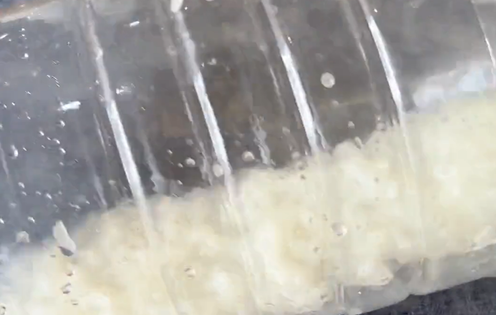 接着往油桶内灌入温水,摇晃一下,漂洗一遍,然后倒掉脏水,再次注入多一些的热水。利用热水来清洁油污,效果也是非常不错的,大力的摇晃漂洗,漂洗两遍差不多就干净了。把将水倒掉以后,倒扣在一边,晾干油桶内的水分,看看原本脏兮兮的油瓶,立马就焕然一新了,看起来既干净又透亮。以后如果家里面的油桶脏了,油腻腻的,就可以用这个方法来清洗,清洗的效果非常的不错。