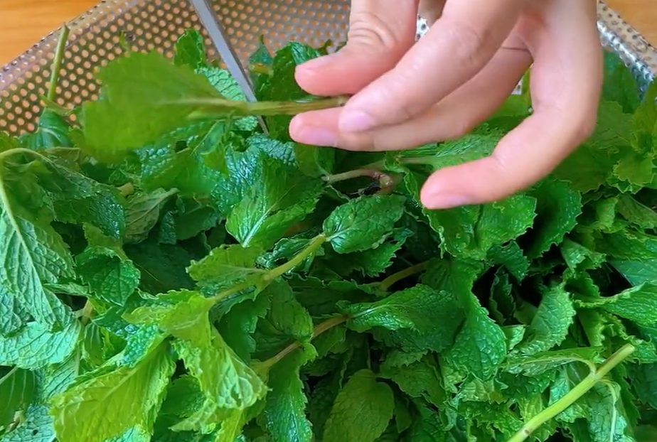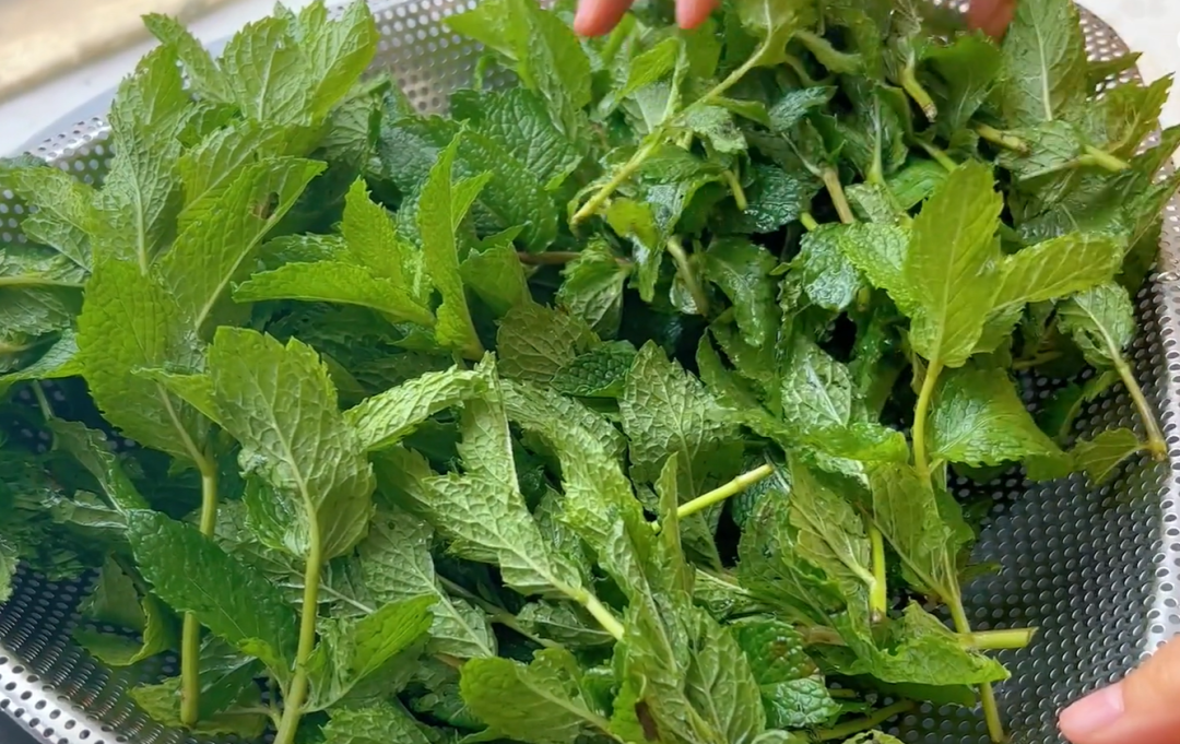 洗干净以后,将它放在菜篮里边,控干薄荷上面的水分。注意不要用太阳暴晒,那样薄荷里边的水分就会蒸发掉,薄荷失水变燕,营养都流失了,就放在通风干燥的地方风干就行。
