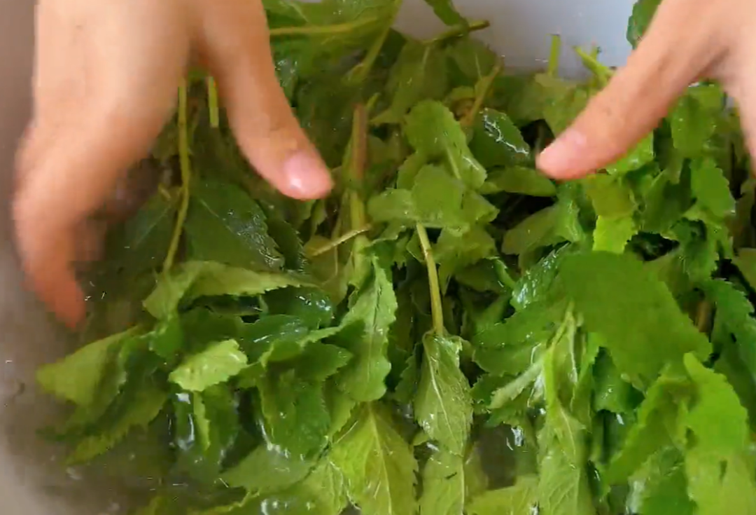 但是大家都不知道的是,薄荷除了可以食用,也很适合外用,新鲜的薄荷拿来做薄荷纯露,做薄荷花露水都特别棒。我们先将采摘回来的薄荷清洗干净,薄荷除了特意种植来卖的,会打理得相对干净一些,像我们家边的一般都是随意生长的,它生长的环境会比较嘈杂,所以清洗薄荷时,多换水清洗几遍,不然大家看水会变得特别脏,用这样脏的薄荷做出来的花露水效果不好哦,所以千万别舍不得用水,一定要多淘洗几次,把它彻底的清洗干净。