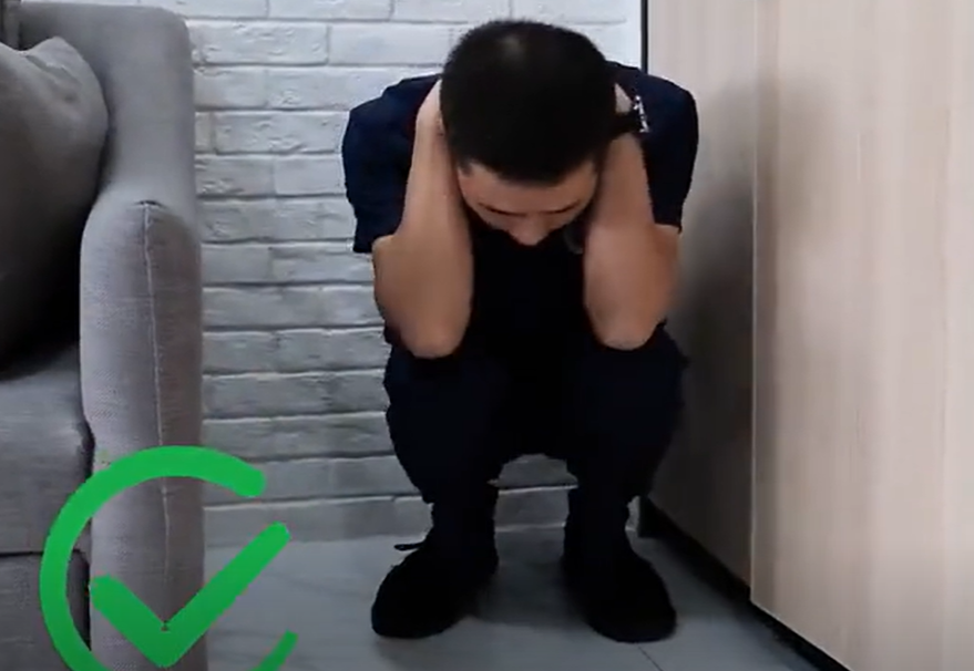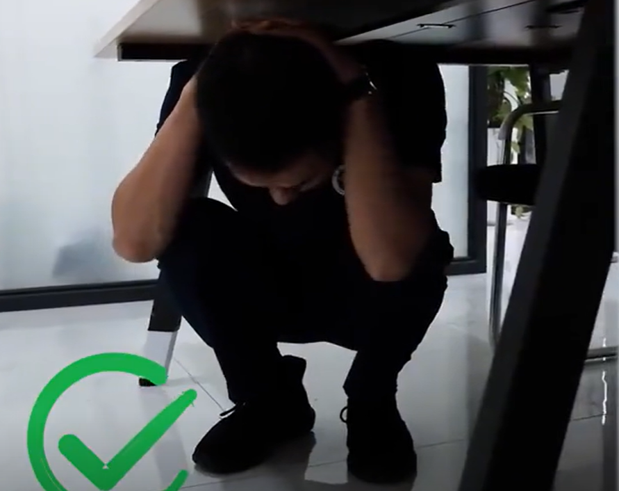 选好地方躲避了,躲的时候姿势要蹲下或者坐下,脸朝下,或者抓住桌腿儿等坚固的物体,以免震时摔倒或者因身体失控移位而受伤。最好您还要在低头的同时用手护住头部或者后颈,把眼睛也闭上,以防异物伤害。