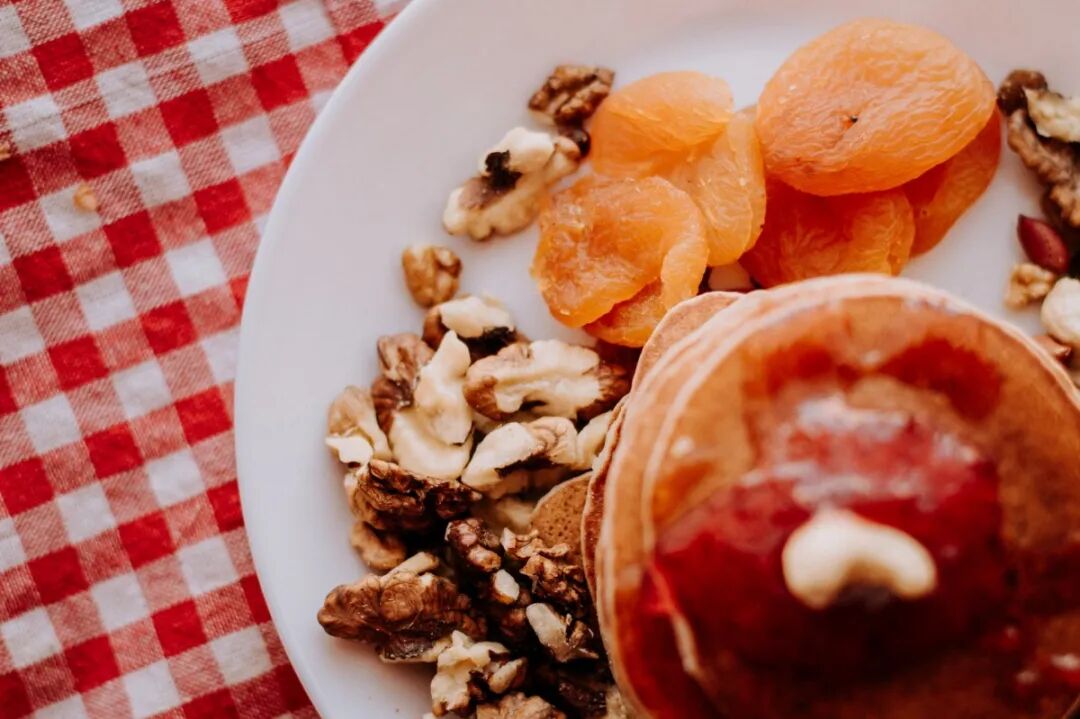 细化到具体食物的话,可以给孩子准备全麦面包、水煮蛋或荷包蛋、小番茄,以及剥几粒核桃。