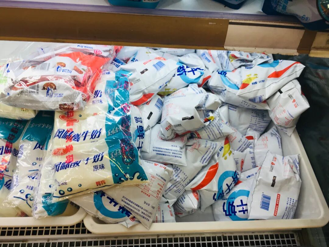 超市的奶区,各种奶类琳琅满目,尤其是调味奶,各种口味孩子们都爱喝。