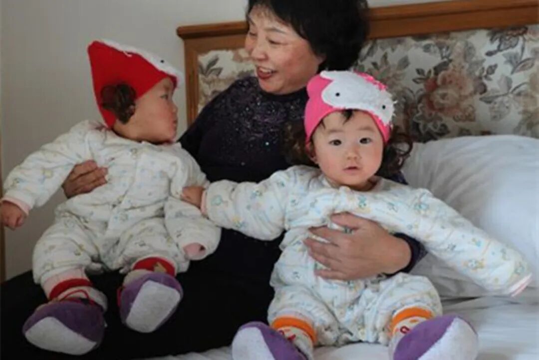 盛海琳阿姨由于爱女的不幸身亡,在60岁高龄的时候产下一对双胞胎小姑娘。