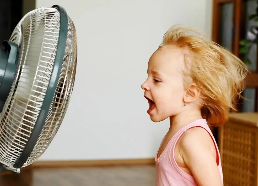 在夏天的时候,人一般都会将风扇的风力开到最大,但是对于小孩子来说,过大的风可能会导致孩子头疼等,所以可以适当的给孩子供入一个较小的风扇,风力数量调小一点,也尽量避免让风扇直接吹孩子的头,未来也可以达到很好的一个降温效果。