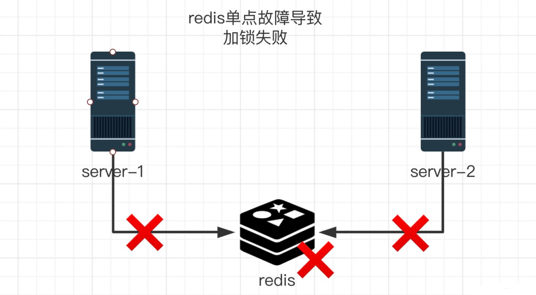 如果执行过程中Redis挂掉了,所有服务来加锁都加不上锁,这就是单节点故障问题。