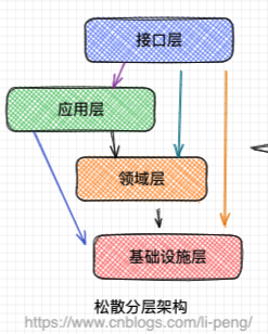 比如在项目初期业务比较简单,最简单的分层架构就实现了项目需求,观察我们的架构可能是这样子的,从上而下的松散分层架构
