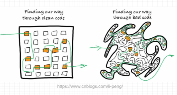 到了项目中期,有新的功能或者bug的修复,老板就给我了一天时间,让我写好处理代码?逾期是要被骂的;这个没用的功能,做了也没人用,随便写吧,早点结束,早去干别的;我手上现在这么多活,你又插进来个新功能,我只能乱搞了,团队内人员水平的不同写的代码更是天差地别,等等,这都是我们实际工作中会遇到的问题。责任心让我们也会想先这样写,以后再重构,一般以后重构表示永远不会重构。上面说的这些都会让我们增加糟糕的代码,混乱的业务逻辑分布在我们系统的各个地方,部门人员变动,新的员工更不可能理解那些杂乱无章的东西,再接着推糟糕的代码,想要理清楚一个业务逻辑,非常容易在混乱的代码中迷路。最直接的后果就是这些混乱的代码会增加新功能的开发周期,领导层问为啥现在开发个功能这么慢?是不是人手不够,再招几个人吧。这杂乱的项目,不是新员工能理的清的,你会发现,虽然员工变多了。但开发效率还是上不去。