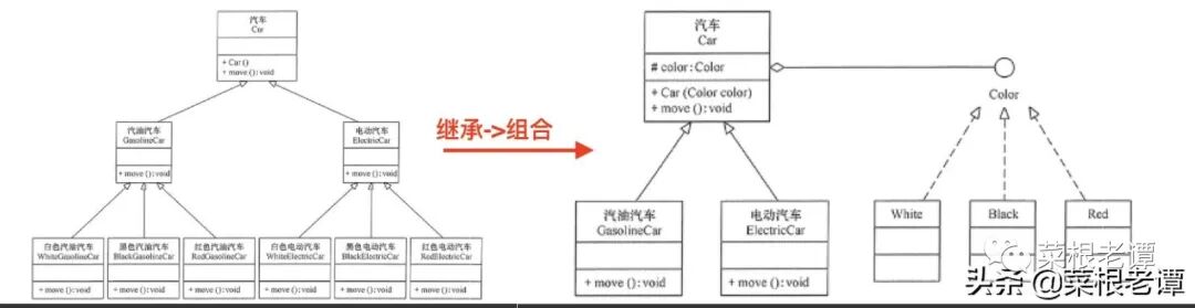 指尽量使用对象组合(has-a)/聚合(contanis-a),而不是继承关系达到软件复用的目的。