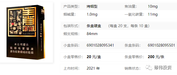 条盒零售价:200 元/条