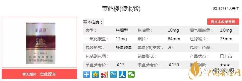 采用小比例配打烟叶技术,以一类烟工艺规格严格工控,保证质量更稳定,抽吸更顺畅。25MM短咀棒设计,着力 强调抽吸时香气的优雅感及高满足感。通过人体最适宜的烟气配比,提炼出更纯净的烟草本香,舒适度更胜一筹。经小编市场调查黄鹤楼 硬银紫售 价为13元/包。