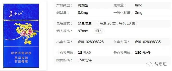 长白山香烟基本参数
