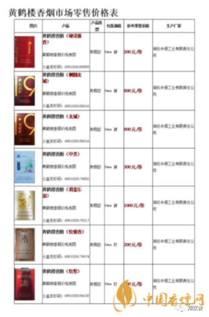 黄鹤楼香烟批发价目表