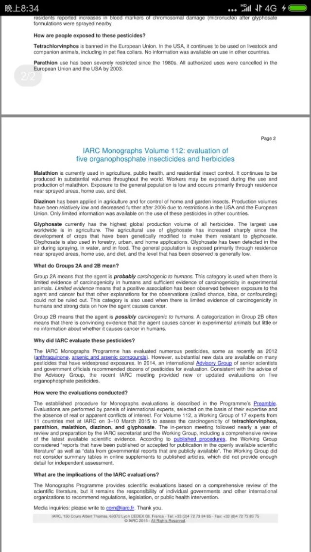 我还给出了美国法院判决书原文的网址,以及世界卫生组织(WHO)的研究报告,证明美国司法界和医学界否认草甘膦导致癌症。