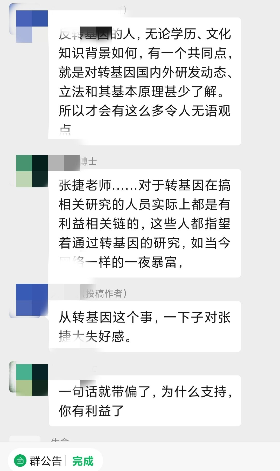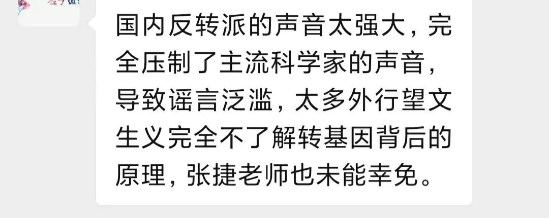我的一位朋友,中国农学院的研究员希望我不要怼张捷,说某些人好面子,不是可以接受批评的人。朋友的面子要给,我就对他说,就发一篇。所以今天是最后一篇谈论张捷与转基因的文章。我是田里的老黄牛,尽到力就行了。