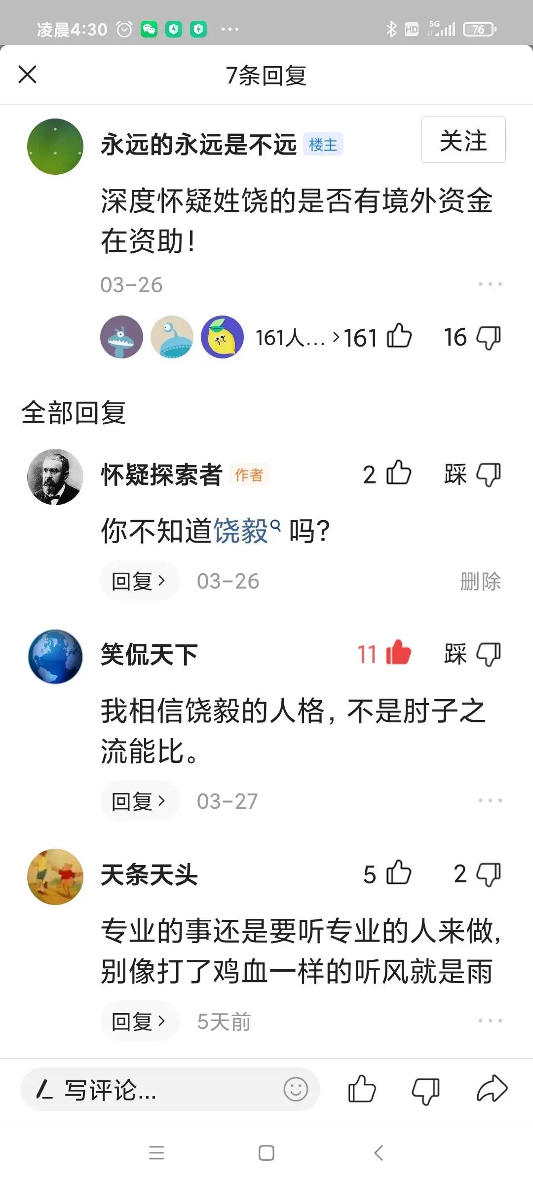 之前还有人说,深度怀疑饶毅接受了海外资金。你们认为可能吗?就因为支持转基因,就是接受了海外资金?好像所有科学家都是为外国人打工一样。